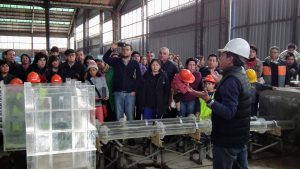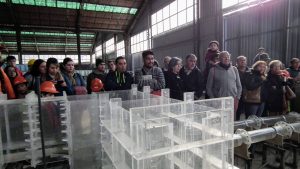 Finalizada la charla, los visitantes hicieron un recorrido por el Modelo Hidráulico del Evacuador de Crecidas del Embalse Ancoa (Región del Maule), al que siguió el ensayo Red Dragon y por último el Parque La Aguada, Primer Modelo (PLA).
