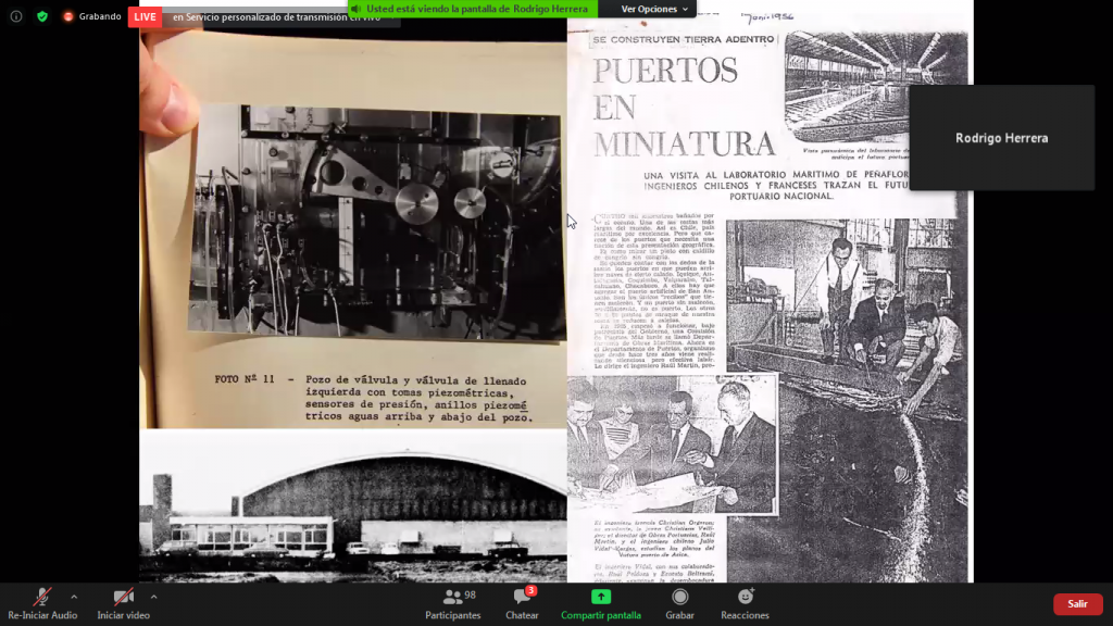 La actividad fue parte del Ciclo de Charlas de Puertos y Costas y comenzó con algunas palabras de Raúl Oberreuter, presidente de Achipyc. Luego Carlos Rodríguez, fundador de Achipyc presentó a Rodrigo, quien repasó los principales hitos históricos de la modelación física y su relación con la ingeniería costera, destacando la importancia de ambos desde los inicios del INH, así como su equipo humano, infraestructura e instrumentación.
