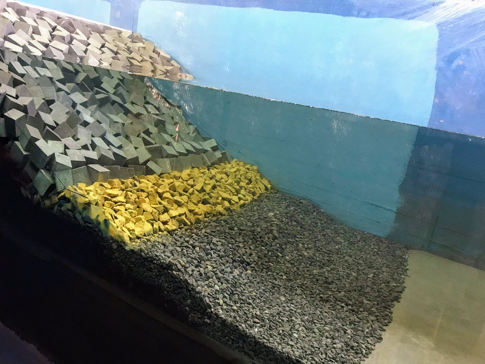 “A lo anterior se suma el ensayo de Puerto a Gran Escala, que es el puerto más grande que va a tener Chile, y probablemente, Sudamérica”, enfatizó la Directora. “Aquí estamos realizando pruebas para determinar la mejor protección a lo largo de la infraestructura frente al oleaje y cómo esta protección reacciona ante el fenómeno natural. Ello en conjunto con expertos ingleses de HR Wallingford”.